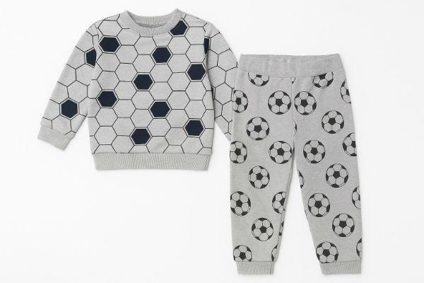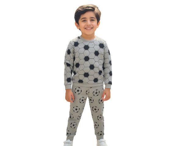 The long-sleeved fleece Tracksuit has a stylish black and white hexagon pattern inspired by a soccer ball, while the matching pants showcase fun soccer ball prints. Trendy soccer-themed kids’ tracksuit made from soft, warm cotton fabric with a cozy fleece interior, perfect for winter wear.
